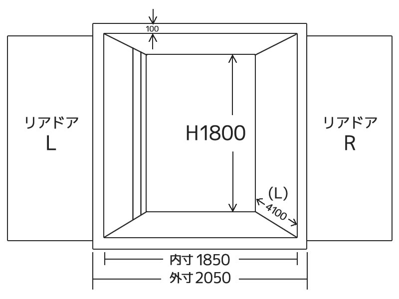 - 長さ(L):4,100|幅(W):1,850|高さ(H):1,800